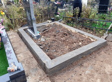 Первым делом мы вынесли с территории участка всё лишнее, а также прополи землю на могиле, одновременно с этим возводя дощатый периметр – одну из сторон будущей опалубки.