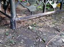 Затем более длинные мы уголки мы приварили поверх догнивающих нижних планок, окаймлявших низ оградки.